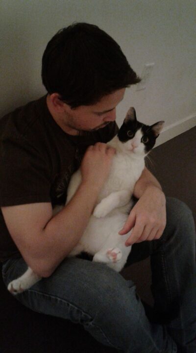 bOBA FETT WAS GIVEN TO ME AS A KITTEN BY MY SON. HOLDING HIM AND FEELING HIS LITTLE HEARTBEAT, HE QUICKLY BECAME MY SOULMATE. WE HAD SO MANY ADVENTURES TOGETHER.