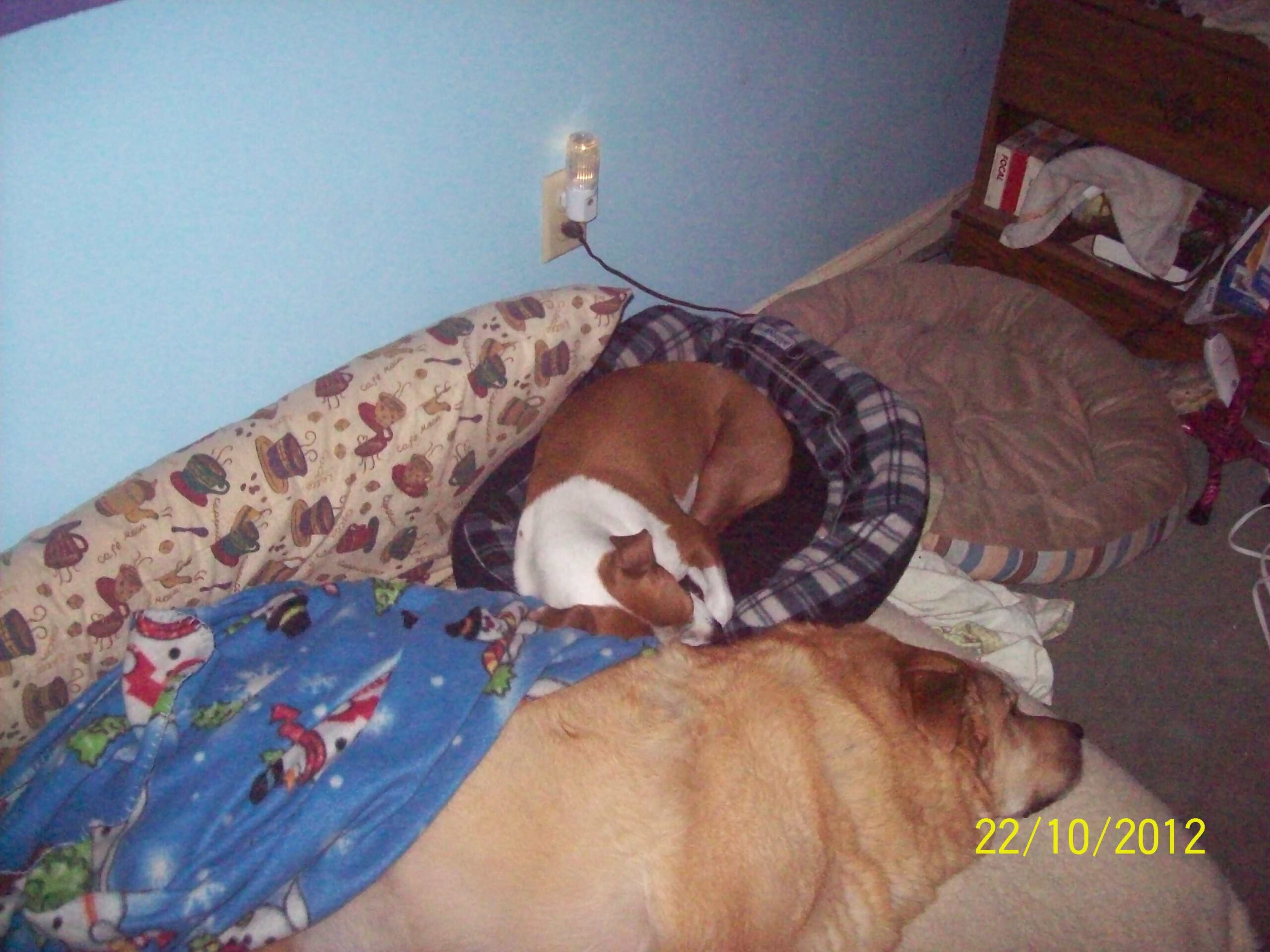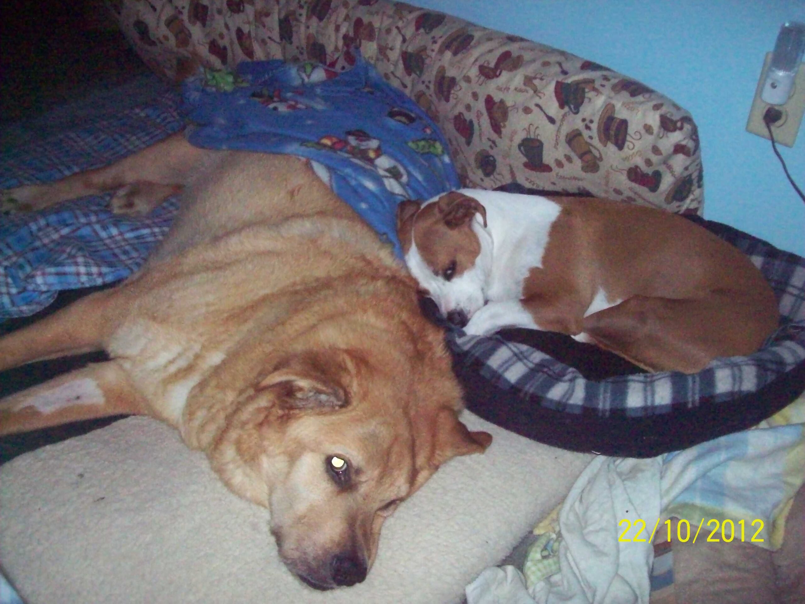 For the next 13 years he has been our loyal, best buddy, he has been there for the loss of our other pets, my MOTHER-IN-LAW who came here to live with us. he has watched colin grow up to become a wonderful man. get his first job. and most of all love the lord. Scooby was not just a DOG; NO, he was much much more he was everything you could want them to be never got angry. he as you see has been dealing with cancer for the past year and has had trouble breathing at times and has not gotten snappy with anyone. he may say to Colin don't pick my up. but come on LET'S play. OH, how he loved people he would always jump up to see everyone. he was always a happy puppy. at night he would carry his football around till he would find the right place to put it down to bed. this is my baby. and funny thing when we would have toys the dogs would always take away his toys FOR, he was the little one. don't take that from him let him play too we would always say. but they never bother him when he would be walking around with that football. they kind of knew that is his special toy. Rest now my little one mommy and daddy love you always my heart is so very broken for YOU. Scooby dobby doo where are YOU? im here mommy Im in heaven waiting for you!