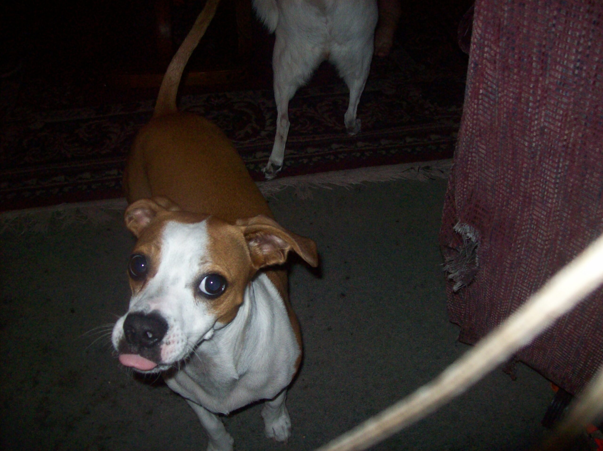 Let me give you Scooby life story. my grandson Colin was 4years old at the time. he was sitting out front with me looking for frogs. what every 4year old boy likes to do. when the couple from around the corner came walking across the street. they took daily walks together but what this morning different was they were being followed by a little dog. a little tiny puppy. this couple [mostly the HUSBAND] did not want this dog followning them. WELL, my grandson took one look at this pup and yelled puppy! come here puppy. the old man was so happy that someone was calling the dog away. he isn't ours he is just following us. he yelled. we instantly fell in love. can we keep him GRANDMA, please! I don't know colin grandpa is up at the store lets wait till he comes home and we can ask him what he thinks, remember we already have two dogs buddy and Molly.
