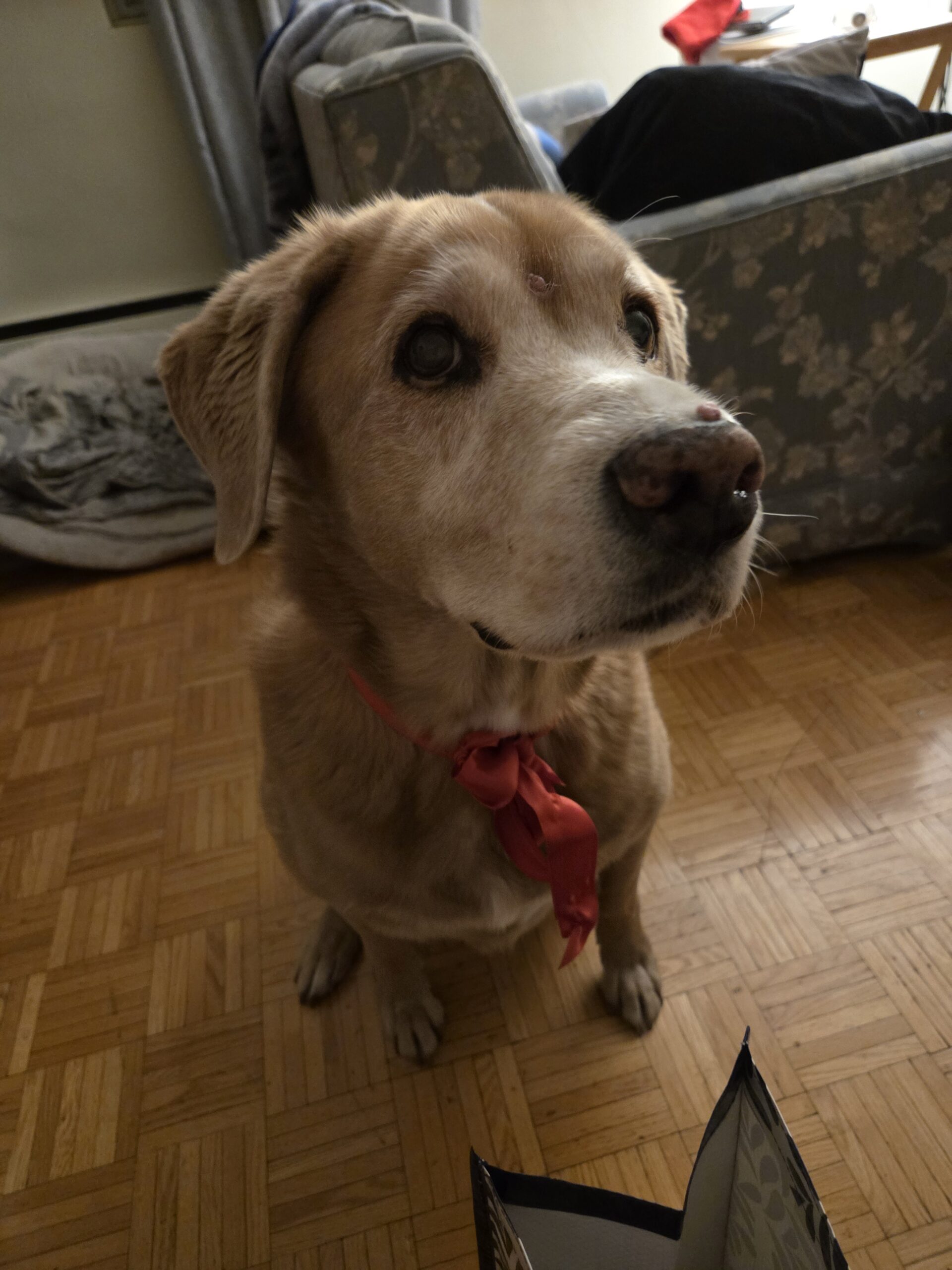 To the dog who was more than a friend. Who helped give me back my mobility and freedom when I was injured years ago. She was a faithful service dog who rose from abuse to a dignified old lady and a faithful and loved companion.